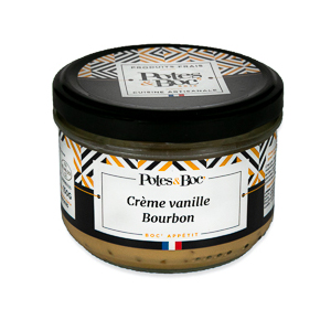 Liste des ingrédients : crème entière (crème, stabilisant : carraghénanes), sucre, jaune d'œuf, amidon modifié de pomme de terre, vanille bourbon Madagascar (sirop de fructose, extrait de vanille, propylène glycol, graines de vanille, caramel).