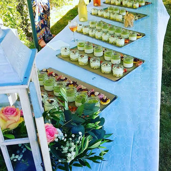- Verrine poires, crémeux caramel, brisure de crumble
